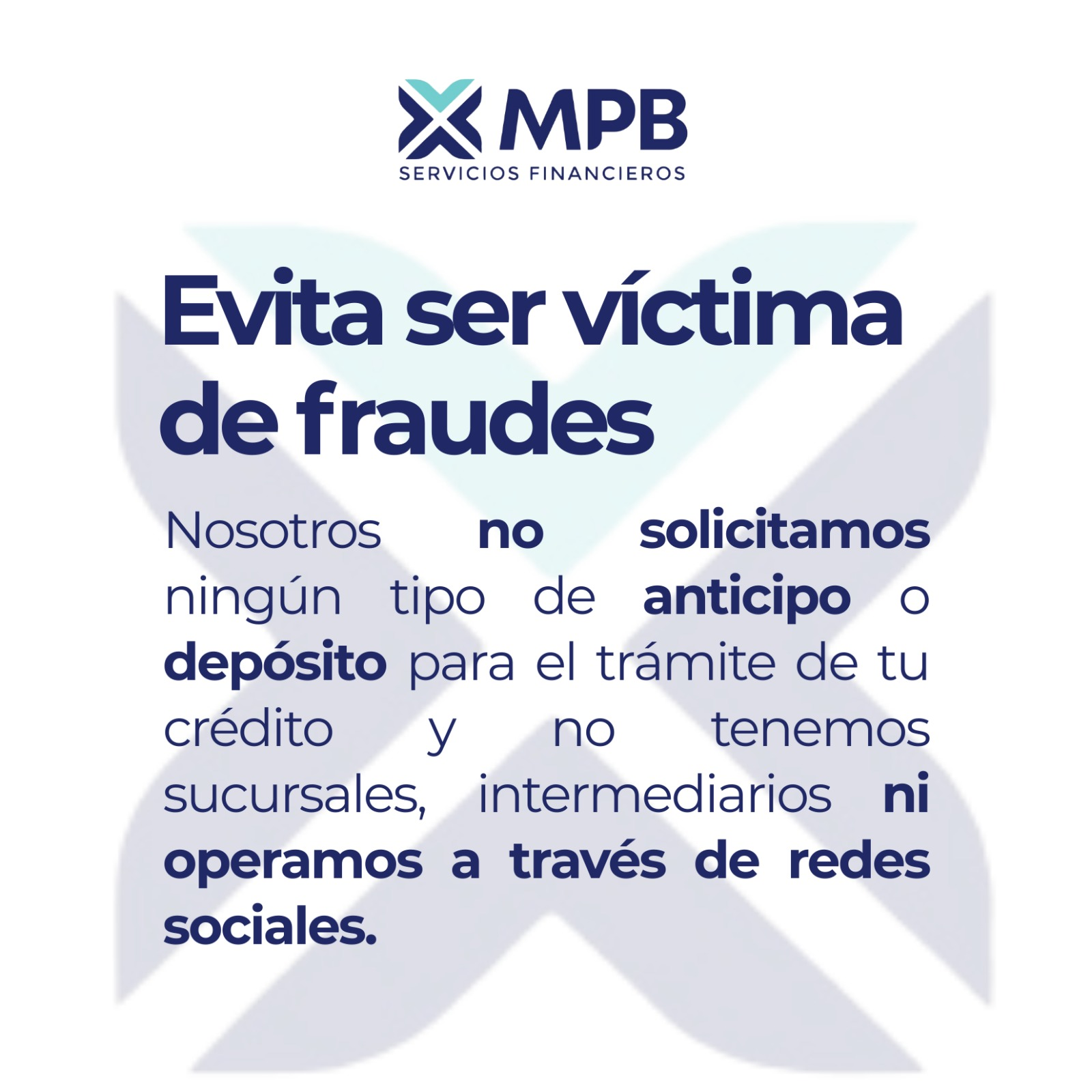 Nosotros no solicitamos ningún tipo de anticipo o depósito para el trámite de tu crédito y no tenemos sucursales o intermediarios